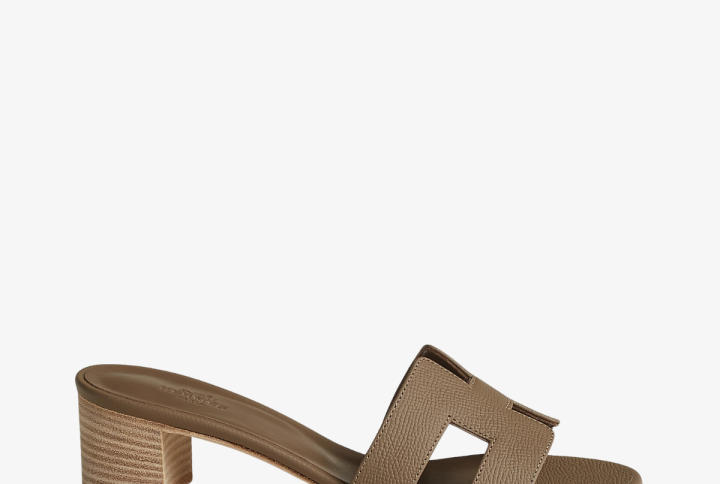 The Hermes Oran Sandal in Vert d’eau features a refreshing water green color and a comfortable goatskin insole and lining.